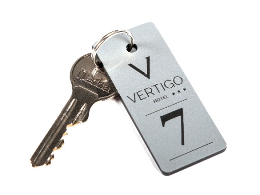 Przedmiotem aukcji jest brelok do kluczy hotelowych o wymiarach 70 x 30mm dwustronny.