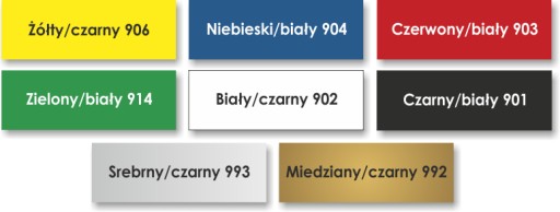 W nazwie koloru pierwszy oznacza kolor tabliczki a drugi kolor napisu.