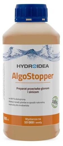 AlgoStopper to w 100% naturalny preparat przeznaczony do każdego rodzaju zbiornika wodnego. Zawiera związki humusowe, skondensowane ekstrakt ze słomy jęczmiennej oraz inne naturalne składniki, których aktywne działanie powstrzymuje masowy rozwój glonów zawiesinowych, glonów nitkowatych i sinic. Przeciwdziała efektowi tzw. zazielenienia wody. W pełni bezpieczny dla człowieka, środowiska i życia biologicznego. Produkowany jest z ekologicznie uprawianych roślin i zbóż, bez użycia nawozów, herbicydów i pestycydów. Preparat można stosować nawet w najbardziej wrażliwym środowisku wodnym.