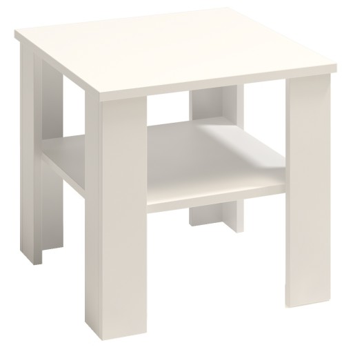 Biała ława z półką wykonana z wysokiej jakości płyty laminowanej o zwiększonej odporności na zarysowania, wykończenie twardą okleina ABS zabezpieczającą mebel przed wilgocią i spełniająca kryteria najbardziej wymagających klientów.