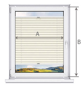 - szerokość plisy (A) powinna być nieznacznie mniejsza od szerokości szyby (plisa po zainstalowaniu powinna swobodnie przesuwać się z góry na dół)
