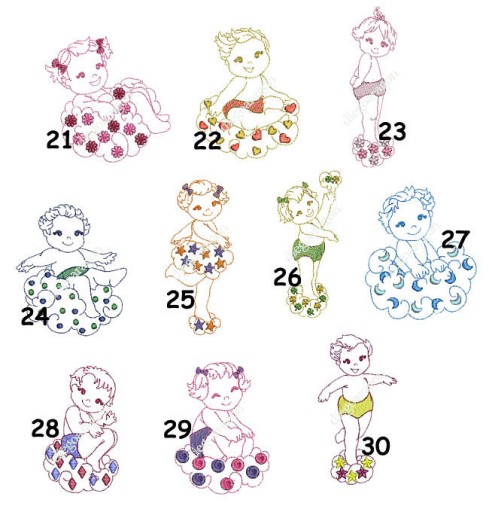 grafika haftowana jest wyżej bardziej po lewej stronie (wyjątek to grafika B-haftowana na środku) i poniżej metryczka w 4 linijkach