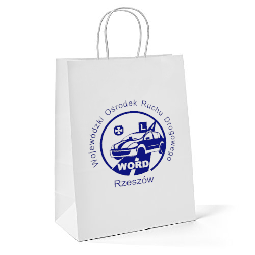 Przedmiotem aukcji są wykonane z pochodzącego z recyklingu papieru torby białe o wymiarach: 30,5x17x34 cm, w ilości 200 szt., ze skręcanymi uszkami wraz z nadrukiem. Zdobienie wykonywane jest po jednej stronie torby, jednym kolorem w całym nakładzie.