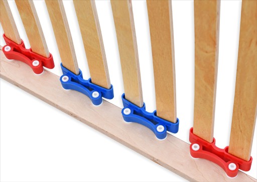 - Dzięki elastycznym listwom stelaż wraz materacem idealnie dopasowują się do kształtu ciała.