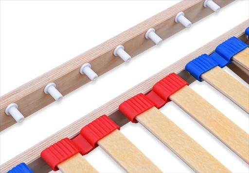 - Dzięki elastycznym listwom stelaż wraz materacem idealnie dopasowują się do kształtu ciała.