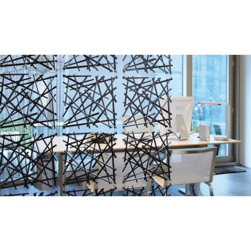 Panele dekoracyjne i dekoracje wiszące w formie, w jakiej proponuje je firma Koziol mogą posłużyć zarówno do dekoracji ścian, kształtowania przestrzeni (jako ażurowe przepierzenia w pomieszczeniach) oraz zastępować tradycyjne firanki. Dynamiczny wzór Stixx wspaniale wzbogaca przestrzeń, a rozsypane linie przypominające patyczki, tworzą trójwymiarowy kształt, odbijający i rozpraszający światło. Dostępne w wielu kolorach panele prowokują do twórczych eksperymentów, mają wiele zastosowań i diametralnie odmieniają pomieszczenia, w których się znajdują. Do każdego z paneli dołączone są dwa haczyki ułatwiające zawieszanie i łączenie paneli w grupy. W zestawie znajdują się 4 sztuki.
