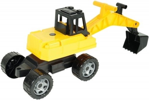 Ogromna koparka do zabawy w piaskownicy, na plaży, a także w domu czy na podwórku. Świetna do zabawy w budowę i kopania w piasku. Ramię i łycha mogą być sterowane przez dziecko wygodnymi uchwytami. Platforma z ramieniem może obracać się o 360 stopni. Z tyły koparka posiada otwór za pomocą, którego można podłączyć do pojazdu np. przyczepkę.