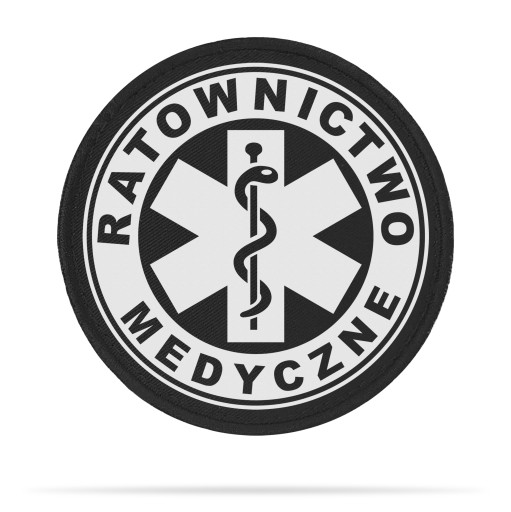 Naszywka o średnicy 10cm z nadrukiem odblaskowym: RATOWNICTWO MEDYCZNE