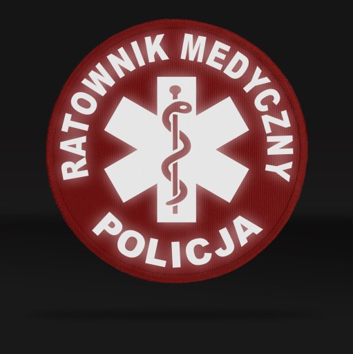 Naszywka o średnicy 10cm z nadrukiem odblaskowym: POLICJA RATOWNIK MEDYCZNY