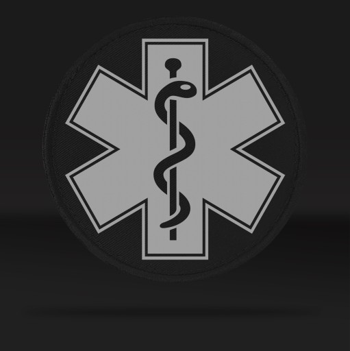 Emblemat o średnicy 10cm podszyty rzepem z nadrukiem odblaskowym: ESKULAP