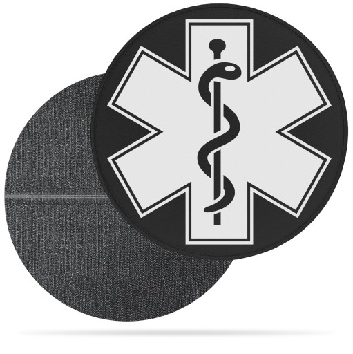 Emblemat o średnicy 19,5cm podszyty rzepem z nadrukiem odblaskowym: ESKULAP
