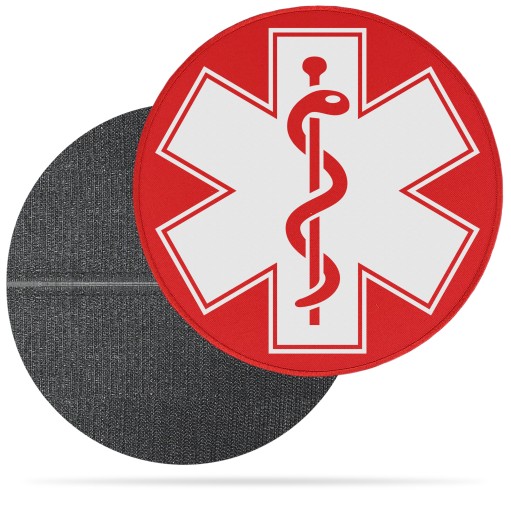 Emblemat o średnicy 19,5cm podszyty rzepem z nadrukiem odblaskowym: ESKULAP