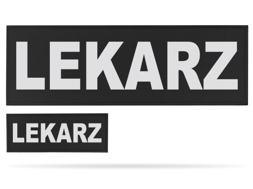 Komplet naszywek 13x5cm + 30x10cm z nadrukiem odblaskowym: LEKARZ
