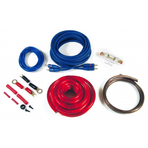 Zestaw przewodów do zamontowania wzmacniacza w samochodzie. W zestawie znajdują się przewody zasilające, sygnałowe, przewód sterujący, oprawka z bezpiecznikiem i akcesoria. Zestaw umożliwia szybką i profesjonalną instalację wzmacniacza