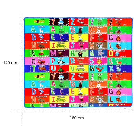 Wymiary 180cm x 120cm x 1cm. Na macie Standard dzieci odkrywają kompletnie nowy świat zabawy i edukacji. Poznają wiele kształtów,kolorów, zwierzątek i pierwszych słów. Obustronna mata to korzystniejsza cenowo opcja maty Premium. Rożni się od niej materiałem i tematycznie.