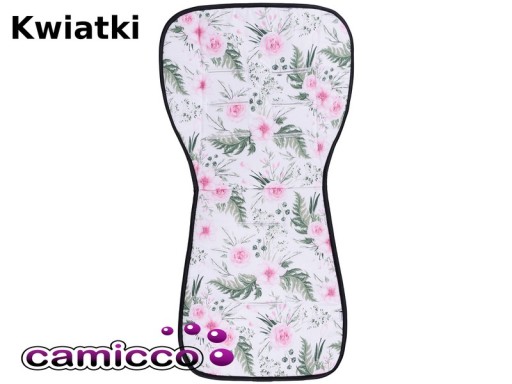 Idealnie pasuje do większości wózków dziecięcych dostępnych na rynku. Wkładka wykonana jest z bawełny 100% która zapewnia odpowiednią cyrkulację powietrza pomiędzy ciałem Dziecka a wózkiem w którym siedzi, pod nim wszyta jest mięciutka pianka, pod spodem obszyta podszewką
