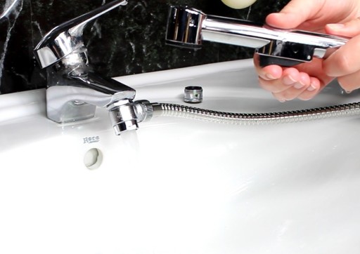 Zasada działania: Woda wypływa z kranu przez perlator dopiero po naciśnięciu przycisku słuchawki bidetowej przełącza się na bidet.