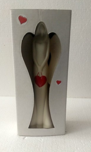FIGURKA ANIOŁ BIAŁY Z CZERWONYM SERCEM DEKORACJA OZDOBA WYSTRÓJ WNĘTRZA