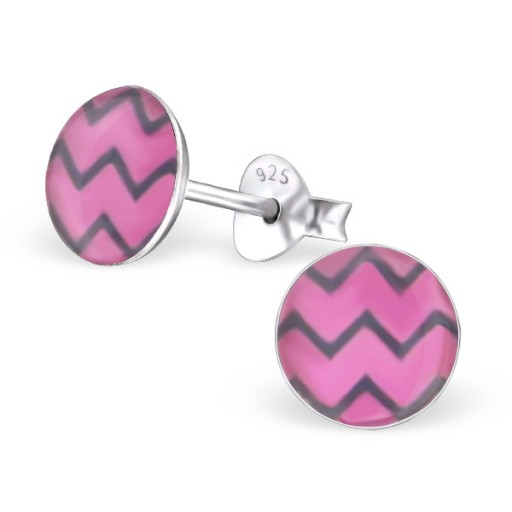 Śliczne srebrne kolczyki okrągłe dla dziewczynki w kolorze różowym. Próba srebra 925. Waga 0,6 g, rozmiar 7 mm x 7 mm.