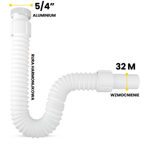 Półsyfon elastyczny harmonijkowy wzmocniony 5/4'' x 32 mm biały