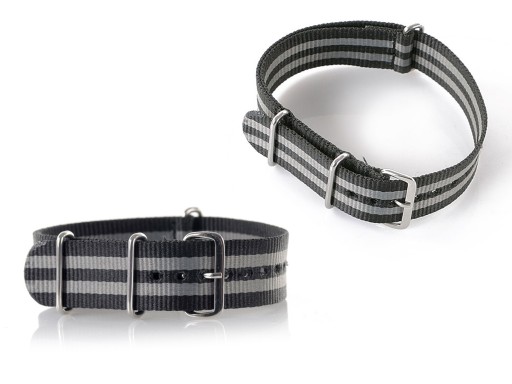 Pasek typu Nato wykonany jest z wysokiej jakości nylonu dzięki czemu idealnie układa się na nadgarstku. Pasek jest wodoodporny i nadaje się do pływania. Klamry wykonane są z nierdzewnej stali. Dzięki swojej bogatej kolorystyce paski z serii Nato Nylon zadowolą nawet najbardziej wymagających użytkowników oraz nadadzą nowy charakter każdemu zegarkowi. Paski Nato występują na naszych aukcjach w rozmiarach 16, 18, 20, 22 , 24 MM .