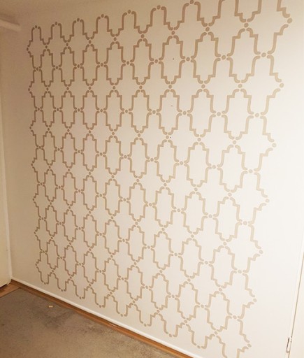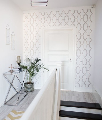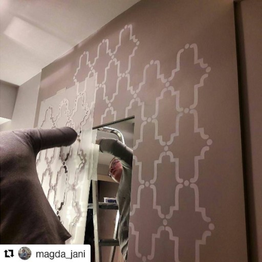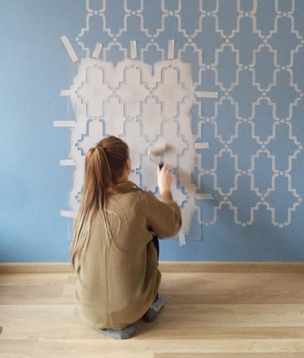 Projekt szablonu został przygotowany w taki sposób, aby wzór można powtórzyć na całej powierzchni ściany. Pozwala to osiągnąć efekt tapety, bez wydawania dużych sum na kilka jej rolek.