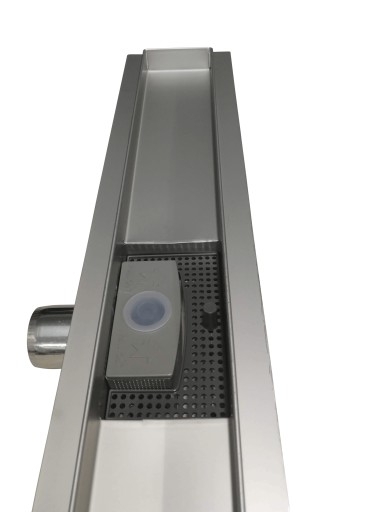 Kompletny odpływ liniowy prysznicowy 80 cm x 7 cm + ruszt dwustronny. Ruszt do wklejenia z jednej strony dowolną płytką po odwróceniu stal pełna