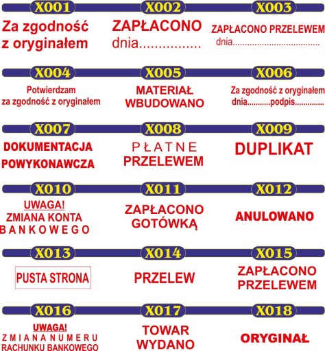 - pieczątki standardowo natuszowane w kolorze czerwonym