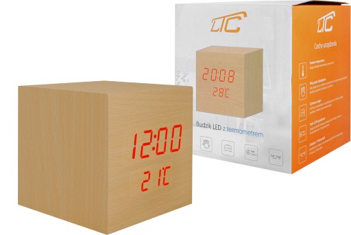 ⏰ZEGAR - BUDZIK W KSZTAŁCIE KOSTKI Z TERMOMETREM I DATOWNIKIEM RENOMOWANEJ MARKI LTC Z SERII HOME