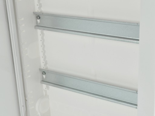 Rozdzielnica firmy Legrand z drzwiczkami płaskimi metalowymi w kolorze białym. Wyposażona w 2 rzędy na 12 modułów.