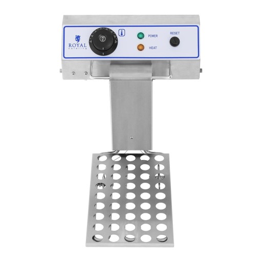 Frytownica wyposażona została w wydajny element grzewczy o mocy 3 kW oraz czuły termostat z płynną regulacją temperatury w zakresie od 60 do 200 °C.