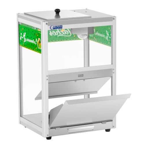 Profesjonalne urządzenie do podgrzewania nachosów marki Royal Catering sprawdzi się w lokalach gastronomicznych, bufetach kinowych, barach a także na imprezach plenerowych, festiwalach itp. Pozwoli na podgrzanie nachosów, popcornu, orzeszków i innych tego typu przekąsek. Dzięki atrakcyjnemu designowi, podświetleniu LED oraz perfekcyjnemu wykonaniu maszyna nie pozostanie niezauważona.