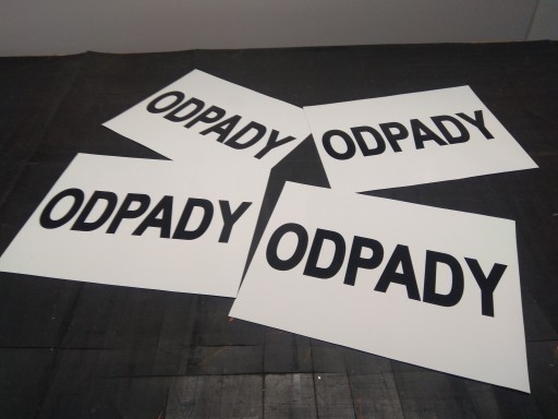 Przedmiotem sprzedaży jest naklejka magnetyczna koloru białego 0,75mm grubości, w rozmiarze 400x300 mm z czarnym napisem ODPADY