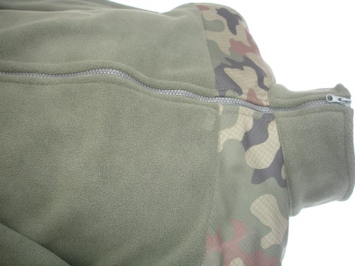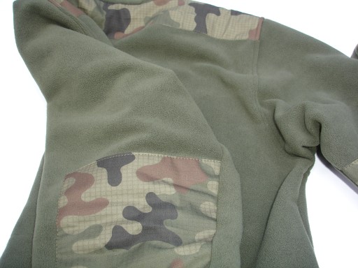 Wojskowa bluza polarowa zielona-khaki z wstawkami materiału moro wz93 ( różnice w odcieniu na zdjęciach mogą wynikać ze sposobu naświetlenia przy robieniu zdjęć ).