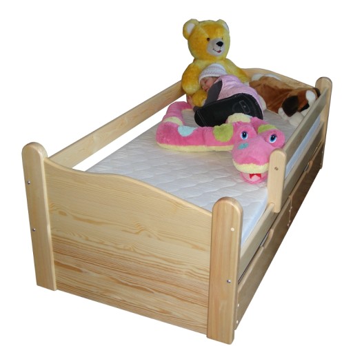 Przedstawiamy Państwu piękne i wykonane całkowicie z drewna sosnowego łóżko dla dziecka w naprawdę wyjątkowej cenie. Jego stylizacja stanowi rewelacyjne połączenie naturalnego piękna z nowoczesnym i innowacyjnym wyglądem. Łóżko pozbawione jest ostrych krawędzi, zapewniając jednoczesne połączenie estetyki z bezpieczeństwem. Jak widać na zdjęciach jest to projekt całkowicie odbiegający od innych dostępnych w sprzedaży, wprowadzający do pokoju naszego dziecka wygodny a zarazem zdrowy i stylowy klimat. Dzięki zastosowaniu w łóżku masywnych i szerokich nóg, uzyskaliśmy największą stabilność i najsolidniejszy produkt dostępny na rynku.