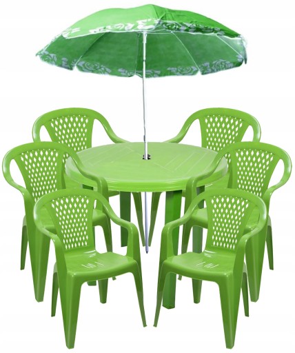 stolik + 6 krzeseł + PARASOL