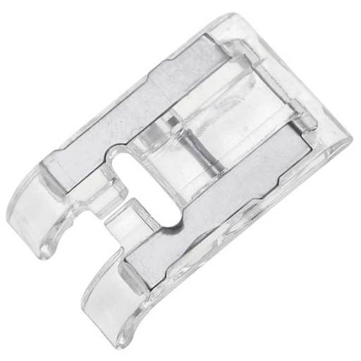 Przezroczysta budowa stopki zapewnia bardzo dobrą widoczność podczas szycia, a specjalnie wyprofilowany spód stopki pozwala przesuwać się jej bez przeszkód przez nierówności powstającej aplikacji oraz wypukłe ściegi ozdobne.