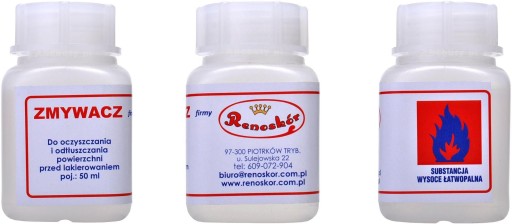 G11-38 POLSKI Zmywacz marki RENOSKÓR do odtłuszczania powierzchni przed lakierowaniem – pojemność 50 ml.