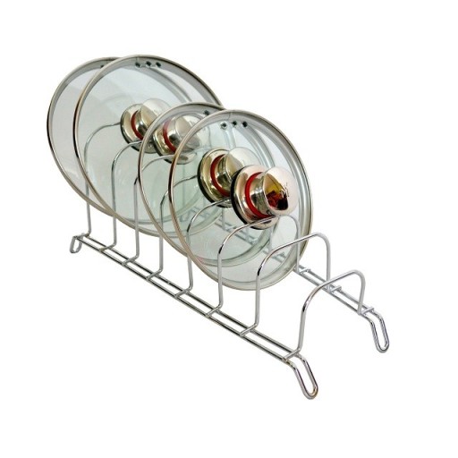 Prezentowany na zdjęciach stojak kuchenny na 7 pokrywek. Pozwoli w prosty sposób przechowywać pokrywki zawsze pod ręką np. na kuchennym blacie. Stojak wykonany z drutu stalowego. Powierzchnia chromowana zapewniająca długie użytkowanie.