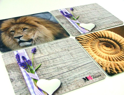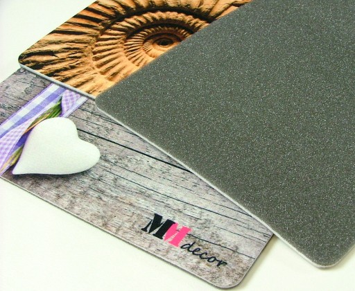 Aby nie przesuwały się po stole warstwa spodnia podkładek podklejona została solidną antypoślizgową pianką.