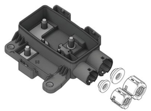 Profesjonalna skrzynka bezpiecznikowa, w zestawie odpowiednia ilość konektorów i uszczelnień na przewody.