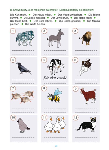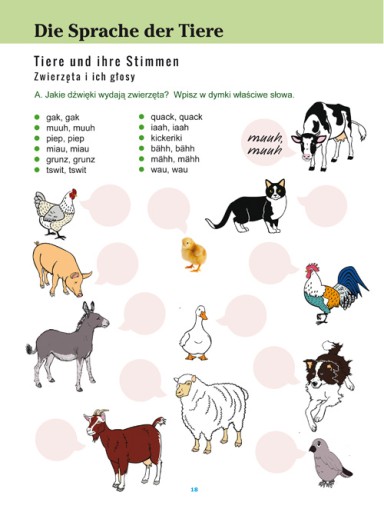 W trakcie zabawy dziecko z powodzeniem przyswaja niemieckie nazewnictwo zwierząt: domowych i dzikich (na wsi, w lesie, w zoo itd.).