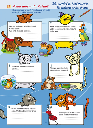 W trakcie zabawy dziecko z powodzeniem przyswaja niemieckie nazewnictwo zwierząt: domowych i dzikich (na wsi, w lesie, w zoo itd.).