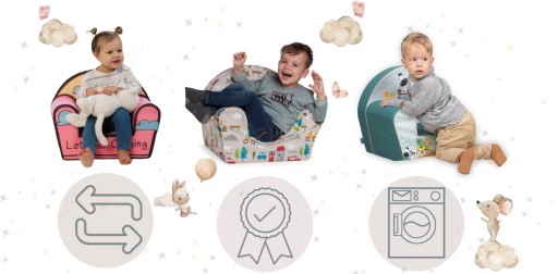 ⭐ Dzieci uwielbiają nasze foteliki za to, że są bardzo lekkie i z łatwością mogą je samodzielnie podnosić, przenosić oraz przesuwać podczas zabawy.