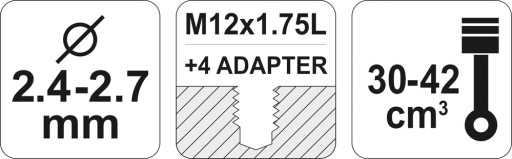 - 5 adapterów o rozmiarach: M12 x 1.75L, M10x1.0L, M10x1.25L M10x1.5L, M12x1.5L