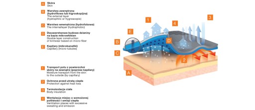 - Termoaktywna zapewnia komfort termiczny, skutecznie utrzymuje stałą temperaturę ciała, chroni przed przegrzaniem i wychłodzeniem.