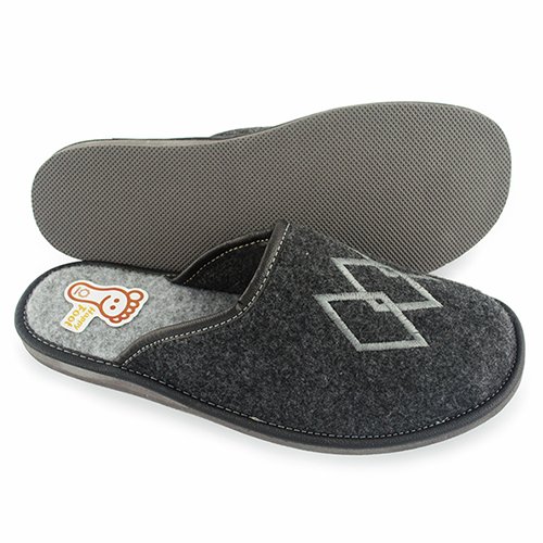 Ciemna kolorystyka prezentowanych filcowych kapci sprawi, że będą one odpowiednie dla każdego mężczyzny. Dyskretny wzór i elegancka lamówka są idealnym dopełnieniem klasycznego modelu.