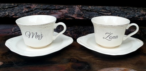 - 2szt. ceramicznych filiżanek z WYBRANYM nadrukiem z listy,