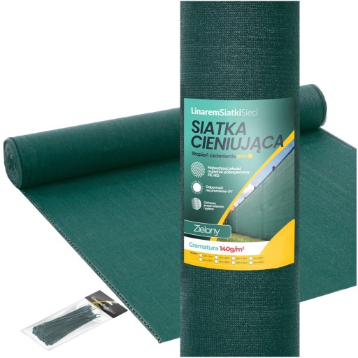 SIATKA CIENIUJĄCA LINAREM SIATKISIECI ZIELONA 140g/m2 W ROLCE 1,5m x 25m