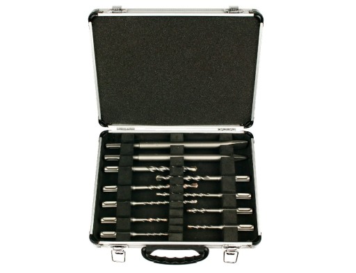 Komplet 11 profesjonalnych wierteł i dłut SDS-Plus firmy BOSCH w aluminiowej walizce.